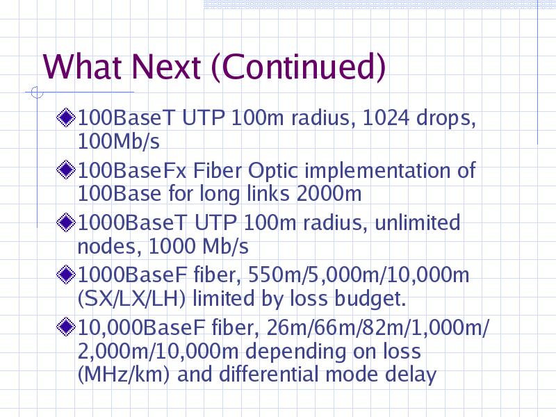 the standard specifies that multimode fiber is capable of transmitting at 10 gigabits/second over 82 meters using standard 50-µm fiber with minimum 850-nm bandwidth of 500 MHz·km; 66 meters using 400 MHz·km 50-µm fiber; 33 meters using 200 MHz·km; and 26 meters using 160 MHz·km 62.5-µm fiber. Distances up to 300 meters are possible with the new 50-µm 850-nm laser-optimized multimode fiber described here.