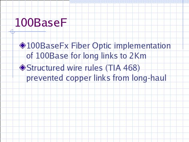 All 100Base standards use 4B/5B encoding, NRZI (non return to zero, ones inverted) on fiber. NRZI minimizes the number of transitions to transmit a transmit its data and is self-clocking. The additional symbols available in the 4B/5B are used to carry additional control signals link "IDLE", "JAM", etc. 4B/5B was originally part of the ANSI X3T9.5 FDDI standard.