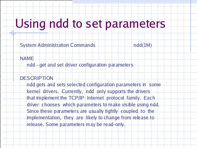 Be careful of scripting with ndd. The interfaces are not stable and can change with driver versions and OS releases.