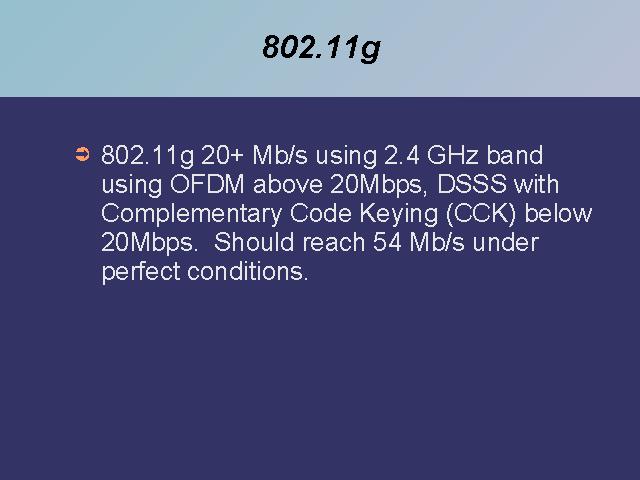 CCK is a complex coding scheme like dqpsk to increase the number of bits encoded per baud reliably. Short for Complementary Code Keying, a set of 64 eight-bit code words used to encode data for 5.5 and 11Mbps data rates in the 2.4GHz band of 802.11b wireless networking. The code words have unique mathematical properties that allow them to be correctly distinguished from one another by a receiver even in the presence of substantial noise and multipath interference. CCK works only in conjunction with the DSSS technology that is specified in the original 802.11 standard. It does not work with FHSS. CCK applies sophisticated mathematical formulas to the DSSS codes, permitting the codes to represent a greater volume of information per clock cycle. The transmitter can then send multiple bits of information with each DSSS code, enough to make possible the 11Mbps of data rather than the 2Mbps in the original standard.